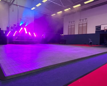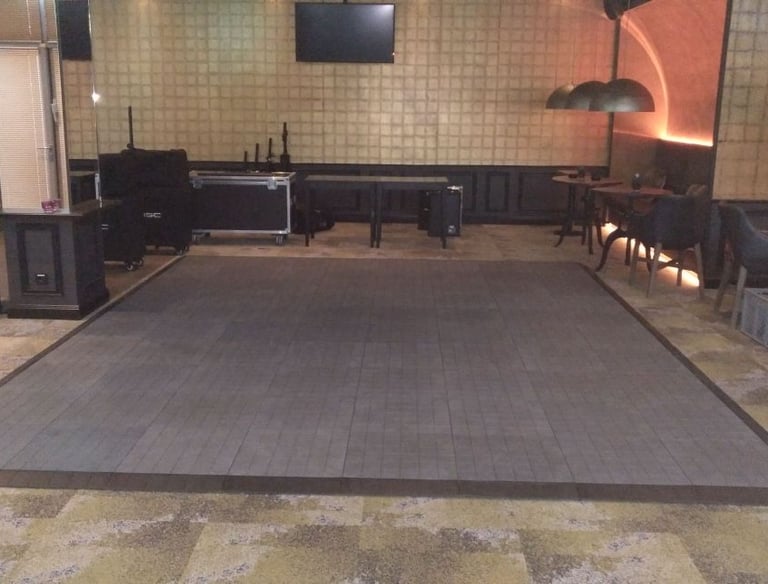 Flexibel & Modular: Wir passen uns Ihrer Location an. Ob kleine Tanzfläche für private Feiern oder großflächige Lösungen für Hallen und Zelte – unser modulares System ist für jede Größe bereit.